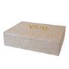 The Large Sand Exclusive box is delicately handcrafted by our craftspeople. This sumptuously-decorative art object, elaborately encased in beige faux shagreen and adorned with a precious custom-made brass handle, exalts any interior.