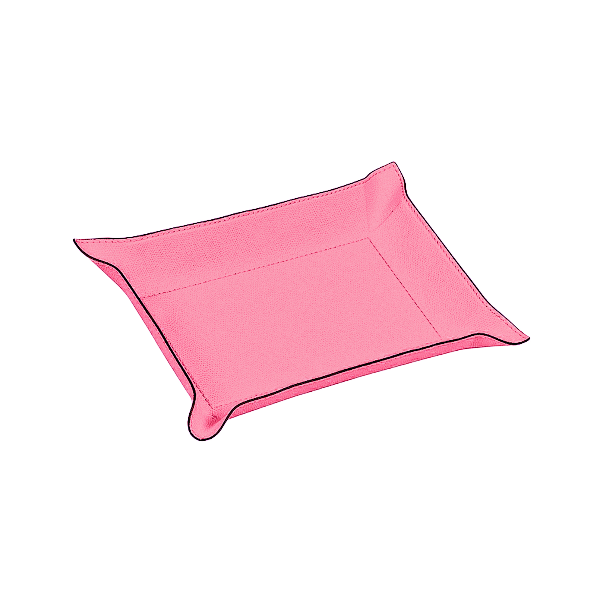 Metal tray covered in handcrafted leather with bendable sides made in Genova Italy.