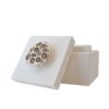 The Squared Pearl Exclusive box is delicately handcrafted by our craftspeople. This sumptuously-decorative art object, elaborately encased in white faux shagreen and adorned with a precious custom-made brass handle, exalts any interior.